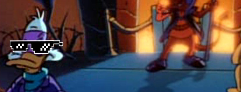 … though if you wanna get technical he’s been to Hell at least TWICE in this show. Impressive! We are of course talking about DEAD DUCK, the iconic episode where Darkwing gets a little TOO dangerous because he has no respect for The Canardian Guardian and her wise, wise words. Featuring even more excellent Megavolt moments and puns galore. You can even have a Morgana Macawber cameo, as a treat.