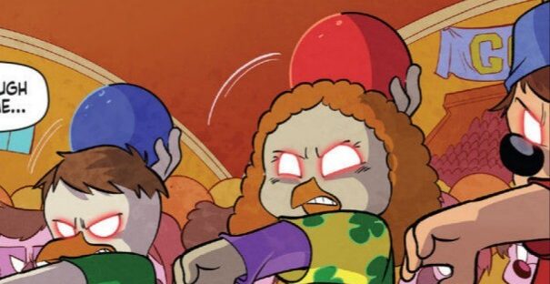 Iiiiit’s comic time again! Get ready to dodge hypno-child-propelled fruit because we’re talking about Dynamite’s 6th issue, and the final in this particular story arc! The story takes a sudden turn, featuring some vagueness Anj mentioned in the previous episode plus some amazing comic panels. And get a gander at that Issue 6 cover with the chibi-style gang! Please hold Honker gently, like hamburger.