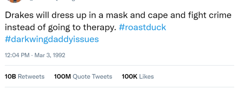 Alternate title: Drakes will dress up in a mask and cape and fight crime instead of going to therapy.